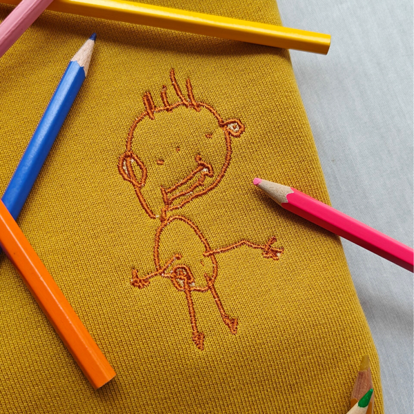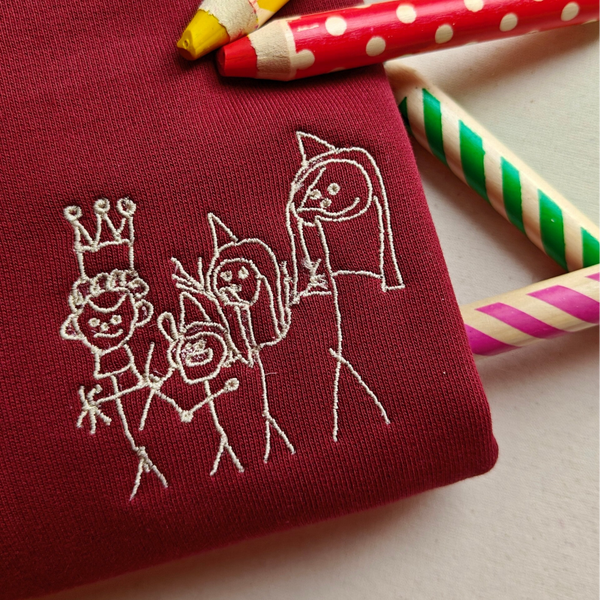 Maakte je een eenvoudige, leuke lijntekening? Of kreeg je een super schattige eenvoudige tekening van je (klein)kind? Ik borduur het graag voor je op een trui zodat de herinnering voor altijd blijft.