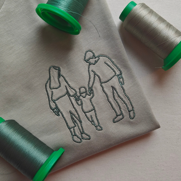 Ik zet jouw favoriete foto om in een lijntekening en borduur deze met veel liefde op een t-shirt in je lievelingskleur.