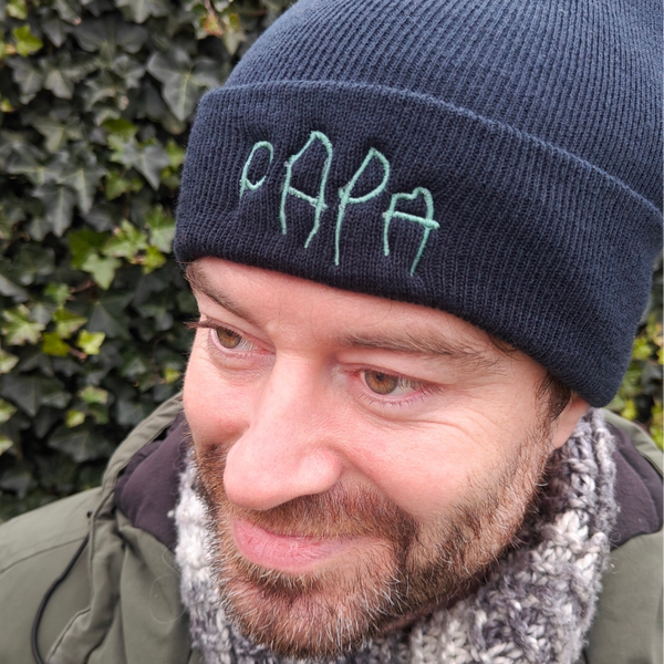 Een gepersonaliseerde muts met een borduursel van eigen handschrift of een klein tekeningetje. Mega tof! Toch?